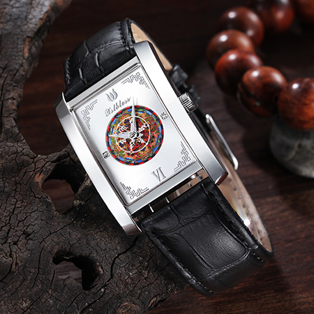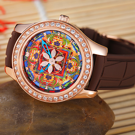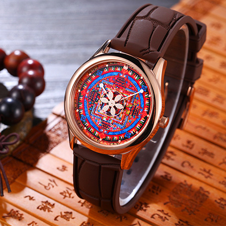 六瓣蓮花的秒輪上刻有六字真言,經高僧開示加持,秒輪轉動,等同于持誦六字真言功德。佛表表盤背景為觀音壇城即為觀音所在,古有云觀世音行善積德,在凡間受人尊敬愛戴,觀音能救苦救難,消滅災禍,因而被是人認為是對家庭和睦、祈求平安的祝愿和護佑。其六朵花瓣秒盤鐫刻六字大明咒的秒針每六秒轉動一圈,隨時隨地為您積功德,為您修行轉經輪,隨身佛壇保平安增福慧,消業障避邪祟,一切善妙吉祥。