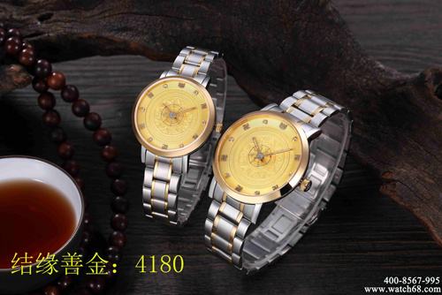 跟小李分手的時候他是一貧如洗,投資連連失利,再見他時,他早已富甲一方。這讓我百思不得其解,由于平時關(guān)系不錯,小李悄悄的跟我說“你看看我手上戴的是什么?”我看了一眼,心想,有錢了,開始炫耀了,一塊金光閃閃的手表,不屑的說“不錯,有錢人就是不一樣哦,這么高檔的手表,剛買的吧?”小李不然“咦,這可是我的財神爺,跟你分手的第二年一寺廟的師傅送的,得此表之后我慢慢的風(fēng)生水起了!”如此一說,我追問其根果。 這是一款如意輪黃財神咒佛表,那年小李失利去求佛,師傅加持之后贈予他的,并告訴他黃財神咒正確念法,讓他虔誠祈導(dǎo),假已時日便可夢圓!