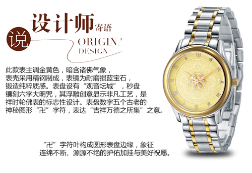 深圳市如意輪表業(yè)有限公司,公司專業(yè)致力于佛教文化傳播,主要生產(chǎn)佛表,轉(zhuǎn)經(jīng)佛表等佛教類產(chǎn)品,產(chǎn)品新穎,備受佛教信徒以及消費(fèi)者關(guān)注,目前有六字真言系列、黃財(cái)神系列、文殊智慧系列、和楞嚴(yán)咒系列等,如意輪是一家生產(chǎn)佛表的廠家,佛教手表融合了中國(guó)幾千年的佛教文化以及現(xiàn)代化時(shí)尚鐘表元素,很多人看到它第一眼就會(huì)被它吸引。所以,做微商不要一成不變的做別人做過的,可以選擇一些市場(chǎng)比較新穎的產(chǎn)品作為出發(fā)點(diǎn),選擇如意輪佛表的微商成員幾乎都傳回了好消息,如果你有想做微商的打算,不妨來如意輪佛表公司資訊一下,我們有非常好的營(yíng)銷方案以及技巧,免費(fèi)分享給所有代理的微客們,讓你們輕松賺錢。商做代理 小編有推薦
