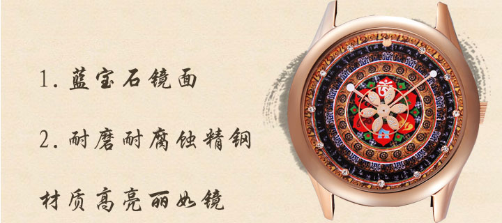 著于身、觸于手、藏于家可逢兇化吉,遇難呈祥;表芯無始無終轉(zhuǎn)動(dòng)不息,威力無比;時(shí)光與佛法律動(dòng),分分秒秒佛佑相伴。一切所求,無不滿足。