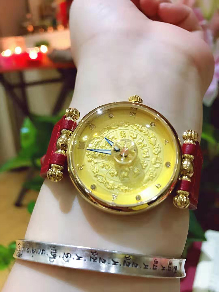 著于身、觸于手、藏于家可逢兇化吉,遇難呈祥;表芯無始無終轉動不息,威力無比;時光與佛法律動,分分秒秒佛佑相伴。一切所求,無不滿足。