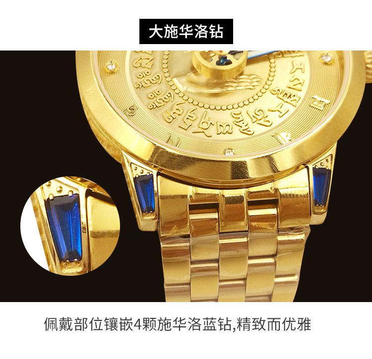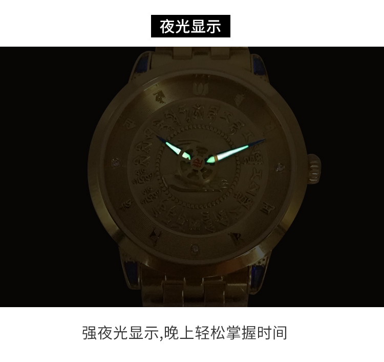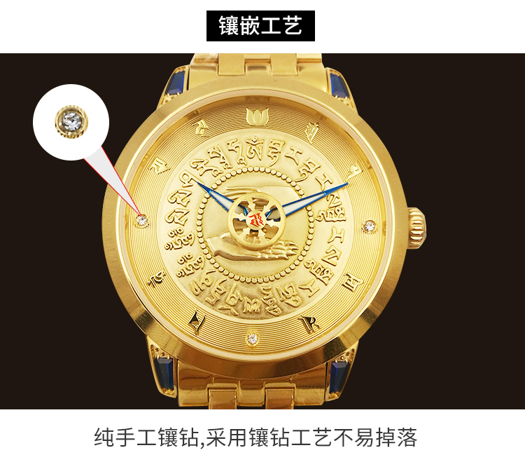 著于身、觸于手、藏于家可逢兇化吉,遇難呈祥;表芯無始無終轉動不息,威力無比;時光與佛法律動,分分秒秒佛佑相伴。一切所求,無不滿足。