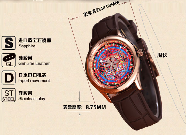 著于身、觸于手、藏于家可逢兇化吉,遇難呈祥;表芯無始無終轉(zhuǎn)動不息,威力無比;時光與佛法律動,分分秒秒佛佑相伴。一切所求,無不滿足。