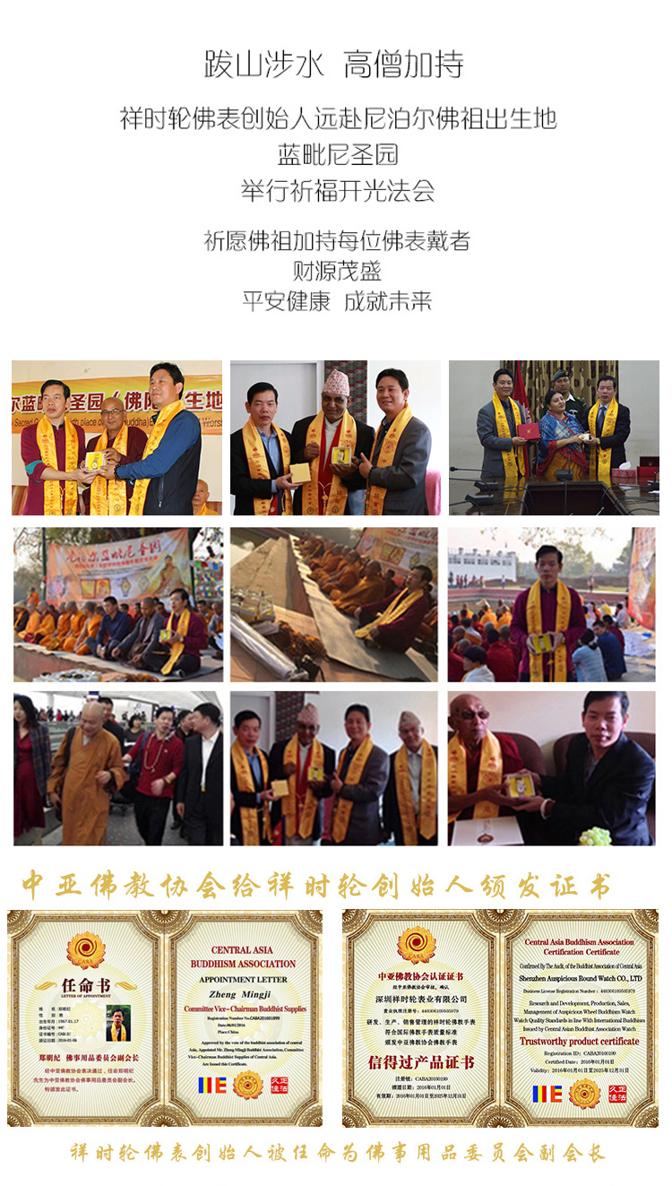 著于身、觸于手、藏于家可逢兇化吉,遇難呈祥;表芯無始無終轉動不息,威力無比;時光與佛法律動,分分秒秒佛佑相伴。一切所求,無不滿足。