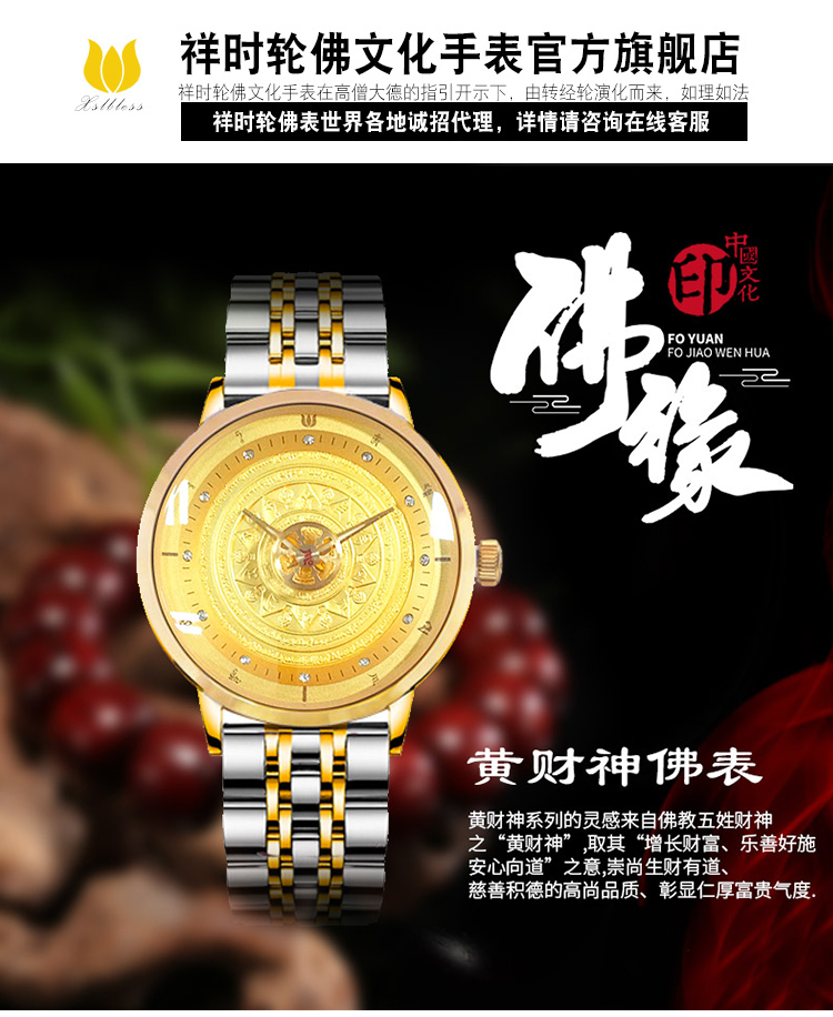 轉(zhuǎn)運(yùn)手表、轉(zhuǎn)經(jīng)輪手表、功德手表、如意輪手表專(zhuān)利產(chǎn)品系列;華南寺高僧加持手表,保事業(yè)保平安。