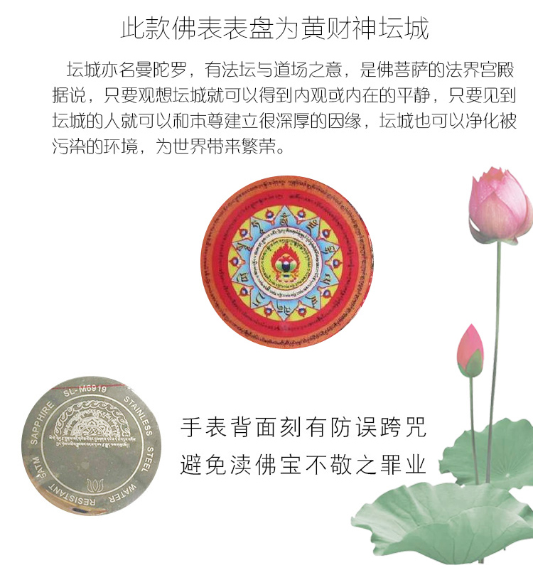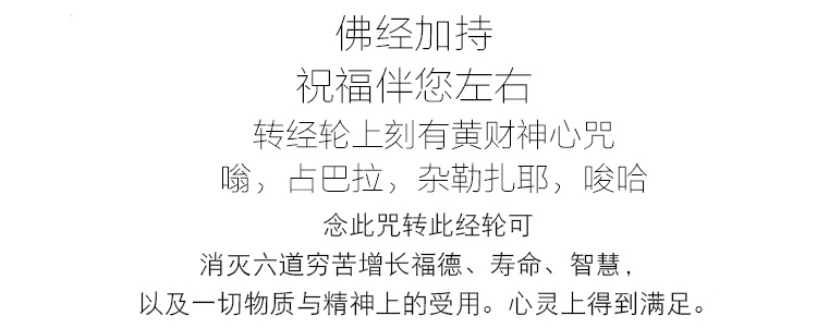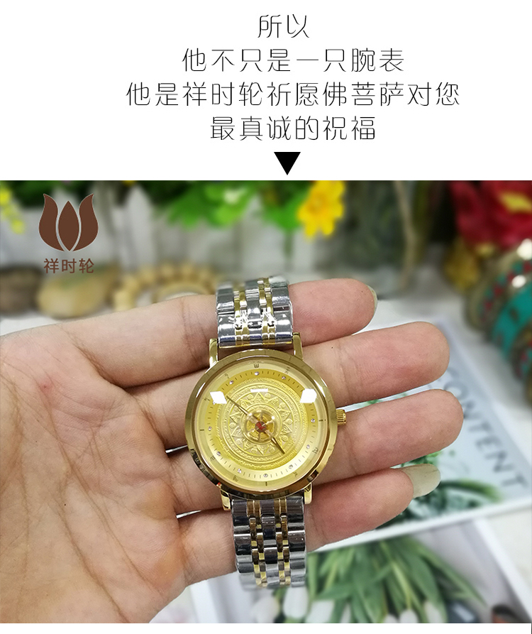 著于身、觸于手、藏于家可逢兇化吉,遇難呈祥;表芯無(wú)始無(wú)終轉(zhuǎn)動(dòng)不息,威力無(wú)比;時(shí)光與佛法律動(dòng),分分秒秒佛佑相伴。一切所求,無(wú)不滿足。