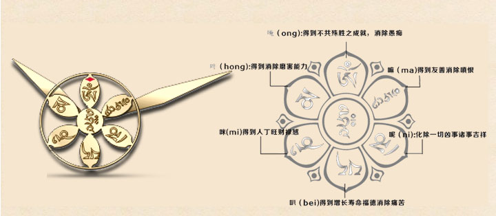 著于身、觸于手、藏于家可逢兇化吉,遇難呈祥;表芯無始無終轉動不息,威力無比;時光與佛法律動,分分秒秒佛佑相伴。一切所求,無不滿足。